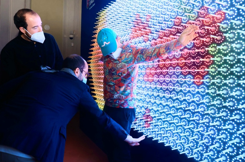 La Quantum Jungle è una un’installazione artistica interattiva di circa 6mq, che visualizza macroscopicamente come si muove una particella quantistica, incluse tutte le sue affascinanti stranezze, dato che non ne abbiamo esperienza diretta. La descrive in luminosi dettagli, è il caso di dire, Robin Baumgarten, l'artista che con un master in informatica all'Imperial College di Londra si è inventato un mestiere che può essere di ispirazione per tante e tanti giovani: "La Quantum Jungle è un'installazione artistica interattiva nuova di zecca, che combina la fisica quantistica con l'interattività tattile e giocosa. L'ho concepita, costruita e programmata a Berlino nel corso dell'ultimo anno, in stretta collaborazione con le scienziate e gli scienziati di Helsinki e Pisa. L'installazione è composta di più di 1000 molle sensibili al tatto, 12000 LEDs indirizzabili individualmente, circuiti stampati, e legno. È progettata in modo modulare per poter essere ri-usata e montata in forme e dimensioni differenti, a seconda del contesto espositivo. Per la sua premiere a Palazzo Blu, sarà nella sua configurazione più grande mai realizzata, consegnandoci di fatto uno stupefacente, luminosissimo schermo di fisica quantistica. Sono entusiasta di esporla a Pisa e non vedo l'ora di catturare la reazione del pubblico nell'interagire con questa nuova installazione!"