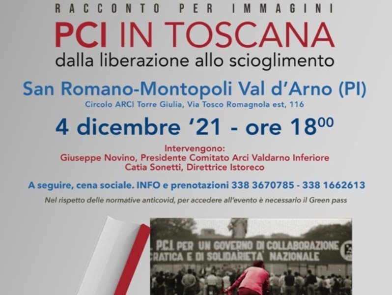 All'incontro, sabato 4 dicembre 2021 alle ore 18 al Circolo Arci Torre Giulia, interverranno: Giuseppe Novino presidente Comitato Arci Valdarno Inferiore e Catia Sonetti, direttrice Istoreco.