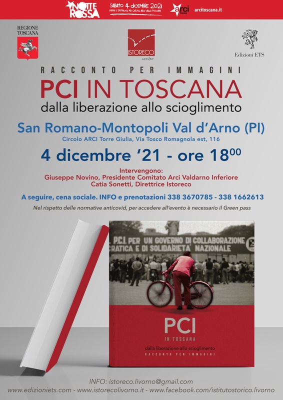 Tre le occasioni in calendario a dicembre per assistere alla presentazione del libro PCI in Toscana dalla liberazione allo scioglimento. Racconto per immagini: il 4 dicembre a San Romano-Montopoli Val d'Arno, il 6 a Piombino e il 7 a Volterra.