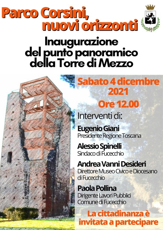 “Sono molto felice di poter inaugurare un'opera – commenta il sindaco Alessio Spinelli – che valorizza il nostro patrimonio storico e architettonico offrendo la possibilità ai fucecchiesi e ai turisti che vorranno raggiungere Parco Corsini di salire sulla sommità di una torre che ha quasi ottocento anni di vita e che si trova lungo l'antico tracciato che da Canterbury conduceva i pellegrini fino a Roma.