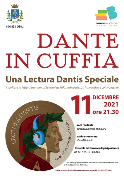 Presentato in prima nazionale in occasione del Festival Internazionale Teatro Romano Volterra - Edizione XIX, nell'anno delle celebrazioni dantesche, il Comune di Empoli e la Biblioteca Comunale “Renato Fucini” offrono una nuova inedita opportunità per ricordare il Sommo Poeta: per la prima volta un inedito “Dante in cuffia”, il rarissimo disco ‘Lectura Dantis’ di Simon Domenico Migliorini accompagnato dal musicista e compositore David Dainelli.