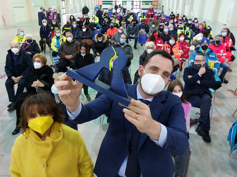 Ai referenti di oltre cinquanta tra associazioni e pro loco, oltre alla pergamena - simbolo della riconoscenza dell’Amministrazione al mondo del volontariato - è stata anche donata l’opera “Stretta di mano”, realizzata dall’artista Dario Longo, in cui dal blu della notte si passa, proprio grazie all’unione, al giallo della luce.