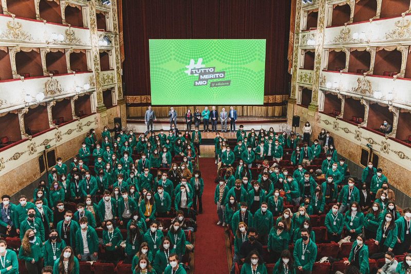 Hanno partecipato alla cerimonia i giovani delle tre edizioni, con indosso una felpa verde, che Fondazione CR Firenze e da Intesa Sanpaolo accompagnano fino alla laurea con borse di studio e un percorso di mentoring e tutoring, partner di progetto Fondazione Golinelli, in collaborazione con l’Università di Firenze e l’Ufficio Scolastico Regionale per la Toscana. Si tratta di ragazzi meritevoli, appartenenti a famiglie economicamente svantaggiate, che altrimenti non avrebbero potuto continuare gli studi. Uno dei requisiti per accedere al programma era quello di avere una media di voti fra 7 e 8, e l’unico impegno per rimanervi è quello di confermare ogni anno ottimi risultati. Gli studenti che hanno iniziato il 3° anno all’università, infatti, hanno superato in media più di 13 esami a testa con una votazione media pari a 27,13. Mentre gli studenti che hanno concluso il 5° anno di S.S. hanno conseguito il diploma con una votazione media superiore al 97 (56 ragazzi con 100 o 100&lode). Durante il percorso di #TuttoMeritoMio i giovani sono affiancati da un team di tutor che gli affiancano e indirizzano. Molte le opportunità formative dai laboratori sulle STEM fino a quelli sul linguaggio giornalistico oltre a numerosi incontri con esperti del mondo dell’impresa tra cui i webinar, molto apprezzati, organizzati da Intesa Sanpaolo. Più di 350 colloqui individuali per definire i piani formativi individuali e oltre 344 incontri per l’orientamento alla scelta universitaria.