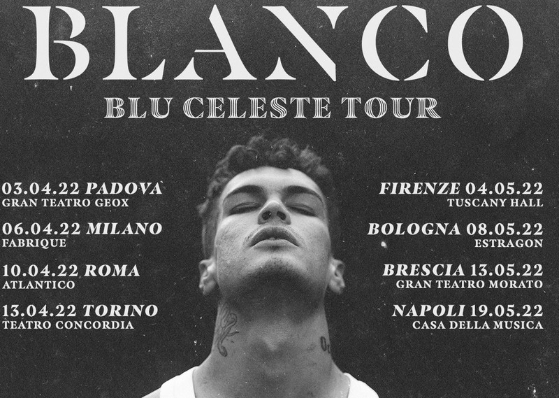 Si annunciano le date di Blanco, astro nascente della musica italiana che, a partire da domenica 3 aprile, inizierà il suo primo tour che lo vedrà protagonista nella primavera 2022. Prodotto e distribuito da Vivo Concerti e Friends & Partners, la prima avventura live di Blanco lo porterà ad esibirsi in otto show nei maggiori club italiani.