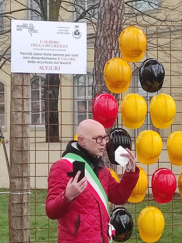 Un abete formato da tanti caschi gialli ma tra questi alcuni sono rossi e neri, per ricordare a tutti come ancora oggi troppe persone in Italia ogni giorno si infortunano gravemente o addirittura muoiono sul luogo di lavoro. E' l'Albero di Natale voluto dal Comune di Fucecchio e dall'ANMIL - Associazione Nazionale fra Lavoratori Mutilati e Invalidi del Lavoro - in piazza XX Settembre, proprio accanto al monumento che ricorda le vittime del lavoro e dedicato a Luana D'Orazio, una giovane vittima deceduta quest'anno in provincia di Prato.