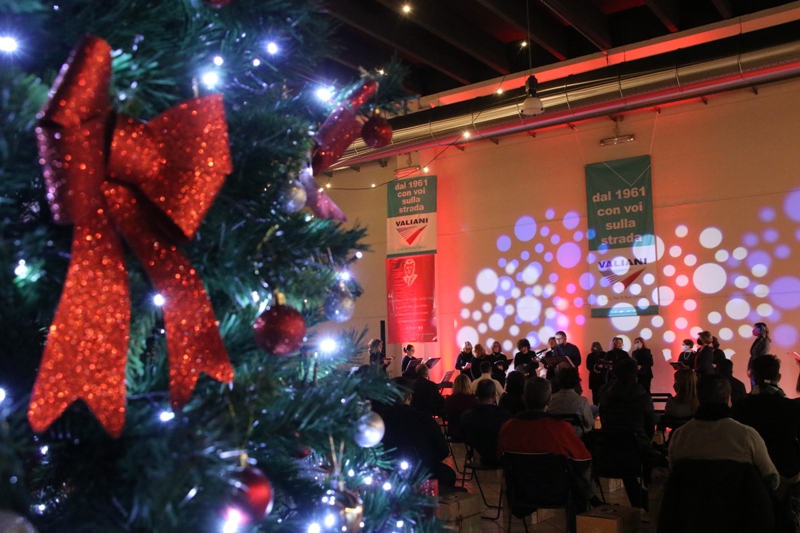 Il salone del Gruppo per Natale si è vestito di luci, accompagnato dalle note di musiche celebri che hanno intrattenuto i collaboratori. Nell'atmosfera era presente anche un vecchio cartellone del Gruppo Valiani, riesposto perché sempre valido. Sopra una frase di JFK: "Cambiare è la regola della vita. E quelli che guardano al passato o al presente, certamente perdono il futuro".