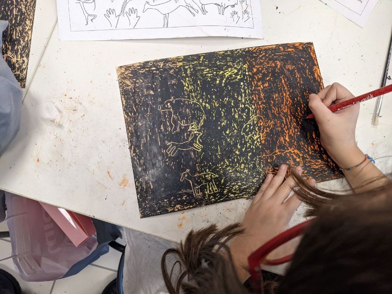 Il passo successivo è stata la visita virtuale alle grotte di Lascaux alla scoperta delle pitture rupestri. Animali e oggetti sono stati riprodotti dai bambini usando la tecnica del graffito e con il carboncino. I bambini si sono cimentati nella realizzazione con l’argilla di piccoli oggetti, gioielli antichi, sigilli, pintadere per timbrare le stoffe e per fare tatuaggi e figure umane ispirate alla Venere di Willendorf. Con la tecnica del colombino hanno realizzato vasi e altri oggetti.