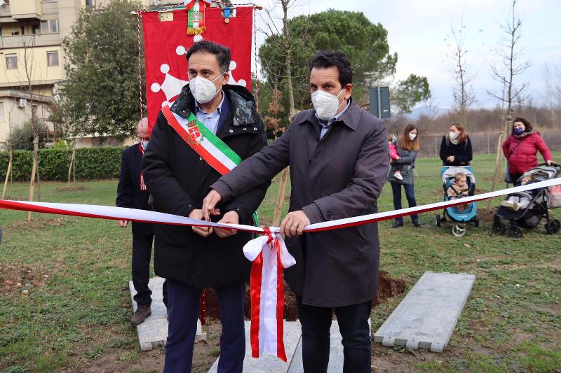 Inaugurato oggi, in via Guido De Ruggiero, nei pressi dello skate park di Cisanello, il “Bosco del Sole”. Un nuovo bosco urbano, simbolicamente dedicato a tutti i 553 bambini nati a Pisa nel 2020. Nella nuova area a verde sono stati piantumati 100 nuovi alberi di 8 specie arboree diverse: Acer Campestris, Carpinus Betulus, Acer Pseudoplatanus, Celtis Australis, Fraxinus Excelsior, Quercus Pubescens, Alnus Glutinosa e Acer Buergerianum. E’ stata inoltre realizzata un’area per la sgambatura dei cani di circa 1500 metri quadrati.