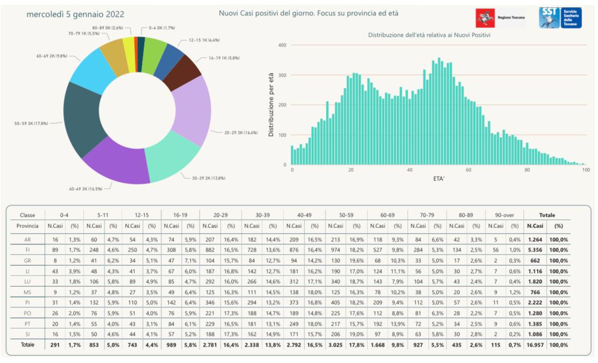 Sono 8368 i nuovi casi positivi nei territori della Asl Toscana Centro. Risultano 7 decessi non tutti riconducibili alle ultime 24 ore, di cui 5 in provincia di Firenze, 1 in provincia di Pistoia e 1 in provincia di Pisa. Di seguito il dettaglio.