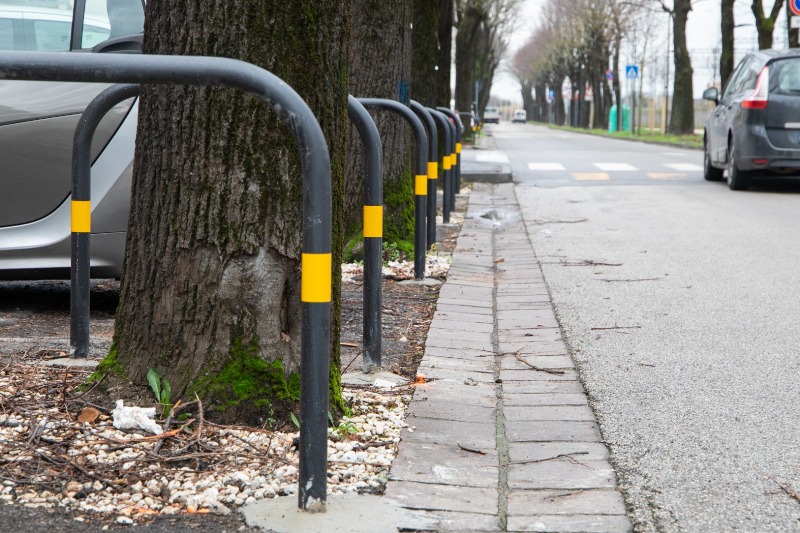 Le aiuole permettono una maggiore areazione del terreno, oltre a aumentare la fertilità del suolo. I parapedonali di metallo sono una soluzione per dare agli alberi protezione dalle attività che si svolgono attorno. È stata dunque prima eliminata una ‘corona’ di asfalto di 1.5 mt per 1.5 mt, ampliando così lo spazio a disposizione della pianta. Adesso ci sono le protezioni da eventuali urti delle auto che vengono parcheggiate ai loro lati.