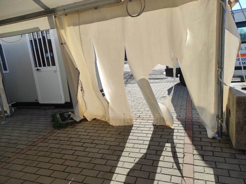 Stamani i volontari, arrivati come ogni giorno sul posto per prestare servizio alla comunità, si sono trovati davanti una scena diversa. I teli dei gazebo erano completamente squarciati, così come la cartellonistica. Il nuovo attacco è stato messo a segno tra l’altro, pochissimi giorni dopo allo spostamento e al rinnovo del punto tamponi nell’area del parcheggio. Una riorganizzazione decisa dalle Anpas di zona per cercare di contenere il traffico e le auto in coda quotidianamente per i test.