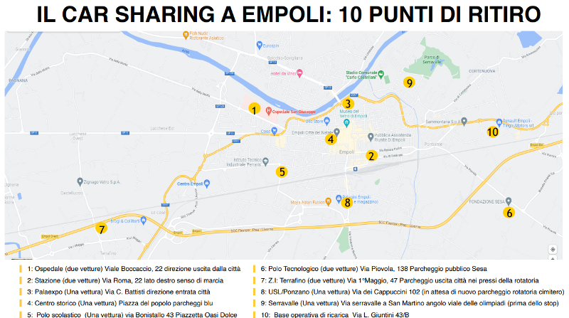 Empoli capofila in Toscana con le sue 15 auto green. Tutti possono iniziare a guidare, come? Scarica l'App, iscriviti e parti. Ecco i 10 punti di ritiro
