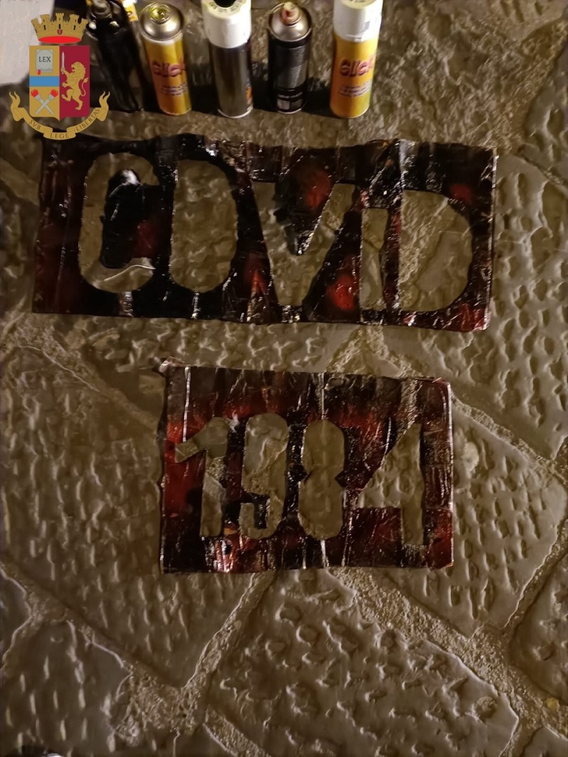 La notte dello scorso 19 gennaio, le due minori sono state sorprese da una pattuglia della D.I.G.O.S. impiegata nel servizio di controllo del territorio mentre erano in procinto di realizzare, con uno stencil, la scritta “COVID 1984” in una strada di questo centro cittadino. Le due ragazze fiorentine, entrambe diciassettenni, erano in possesso, oltre che dello stencil con la scritta “COVID 1984”, anche di 5 bombolette di vernice spray, tutto materiale sottoposto a sequestro.