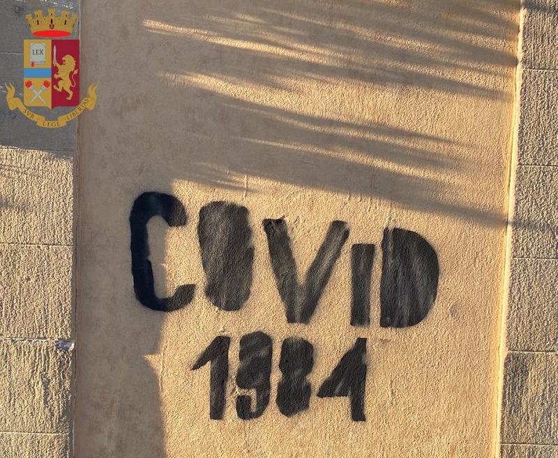 Nella mattinata di ieri la Polizia di Stato di Firenze ha denunciato alla locale Procura della Repubblica presso il Tribunale per i Minorenni due ragazze fiorentine che, sulla base di quanto finora emerso nelle indagini, sarebbero le autrici di una serie di scritte “COVID 1984”, realizzate nei giorni scorsi su alcuni edifici del centro cittadino di Firenze; dicitura che richiamerebbe ideologie complottiste e totalitarie del romanzo apocalittico di George Orwell “1984” e che verrebbe attualmente utilizzata da sostenitori riconducibili a gruppi di area No-vax per la campagna di contestazione alle misure governative volte al contrasto della pandemia da Covid-19.