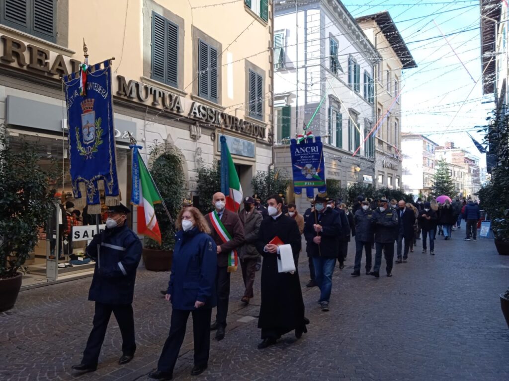 Il vicesindaco Alessandro Puccinelli, nel suo intervento, ha sottolineato come "Ricordare quei momenti e quella tragedia significa ripetere con grande forza che la guerra rappresenta in ogni circostanza la vera sconfitta dell'umanità". Alla fine del secondo conflitto mondiale Pontedera contò 370 morti e 1200 feriti su una popolazione che allora non raggiungeva i 20mila abitanti e, in città, più della metà delle abitazioni furono distrutte o danneggiate, così come anche scuole e fabbriche.