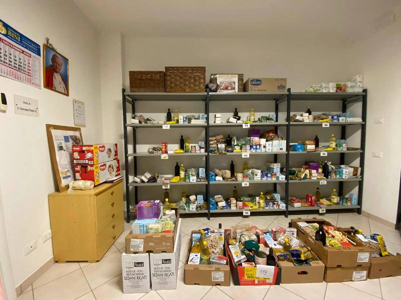 Mediamente ogni mese vengono aiutate 128 persone, con alimenti a lunga conservazione, alimenti freschi (mozzarelle, formaggi) frutta e verdura. Nel corso del 2021 gli aiuti sono venuti dal Banco Alimentare della Toscana con 1176 kg (7%) con prodotti generici donati dai grandi magazzini (Colletta) e sempre dal Banco Alimentare della Toscana i prodotti Fead (fondo comunitario europeo) pari a 7995 kg. (48%) mentre i prodotti della nostra Dispensa Alimentare distribuiti ammontano a 7515 kg. (45 %).
