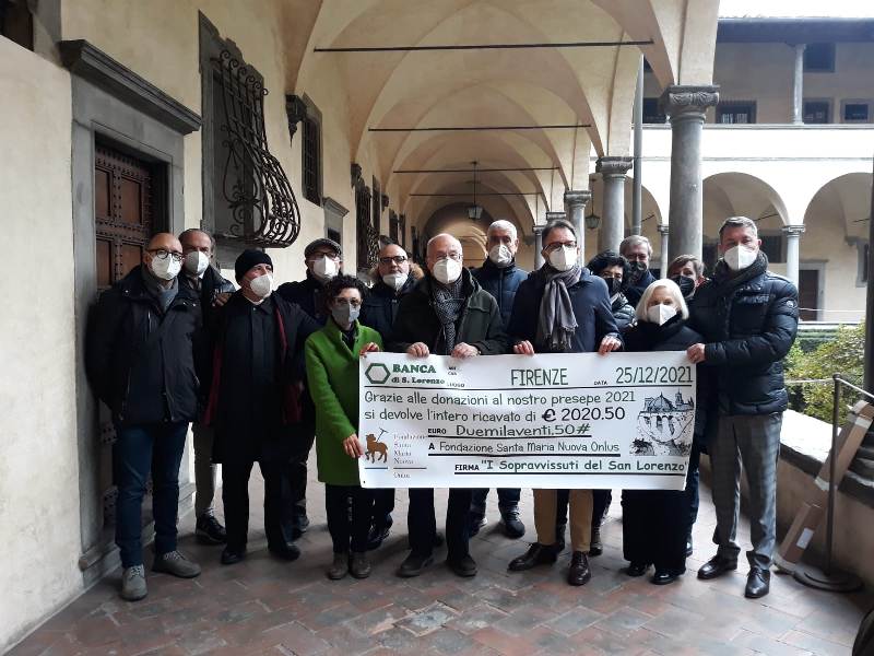 La riconoscenza verso medici infermieri e sanitari che in questi anni si sono spesi per contrastare la pandemia diventa un aiuto concreto. I Sopravvissuti del San Lorenzo, associazione che riunisce gli ambulanti e i commercianti che si battono per la riqualifica dello storico rione fiorentino, hanno consegnato oggi alla Fondazione Santa Maria Nuova Onlus le offerte raccolte durante le feste natalizie per il presepe allestito nella Basilica di San Lorenzo e dedicato proprio agli “angeli col camice”.
