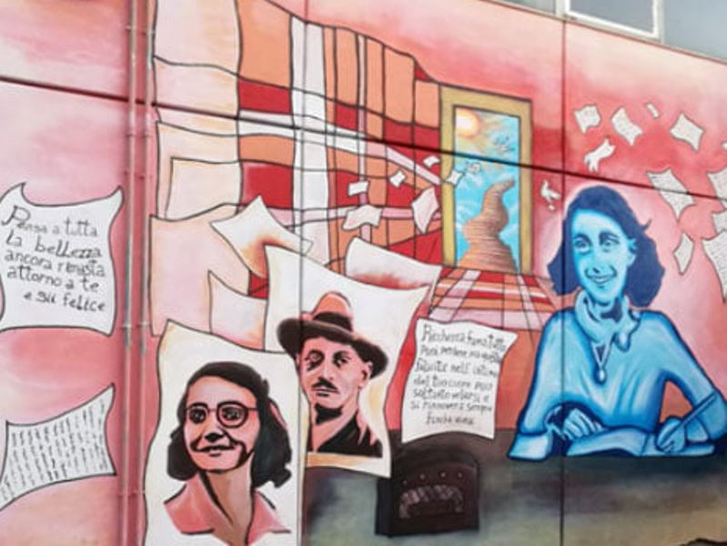 La street art celebra Anna Frank e commemora la Giornata della memoria con un murale. Oggi l'opera è stata inaugurata alla scuola che porta il nome della giovane ebrea olandese morta nel campo di concentramento di Bergen-Belsene e che ha lasciato in eredità al mondo il famoso diario.
