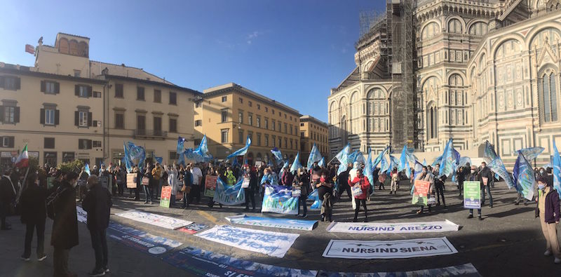 “Abbiamo registrato una grande partecipazione – commenta Giannoni, in riferimento all’adesione toscana allo sciopero - al di là del numero delle persone che sono potute venire in piazza Duomo per il sit-in. Ringraziamo tutti, compresi quelli che non sono potuti venire perché contingentati, ma oggi sono in servizio con un distintivo sul cuore per ricordare le ragioni della protesta”.