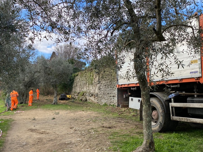 La riqualificazione del verde presente nell’area comprende: la ripulitura degli infestanti presenti sulle mura; la sostituzione di tutti gli esemplari di pino nero (impiantati recentemente e non autoctoni) con piante di olivo, volta ad un riassetto strutturale sia della specie che dell’organizzazione spaziale dovuta ad una riprogettazione del sito effettuata direttamente da Città Metropolitana e Comune, perseguendo un’ uniformità stilistica e paesaggistica rispetto all’oliveta adiacente.
