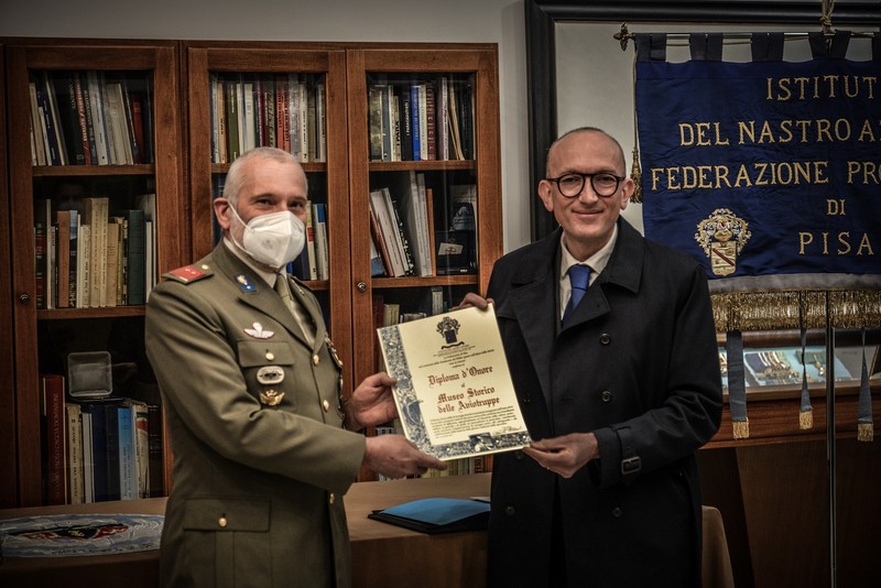 Il Presidente del Nastro Azzurro, Alberto Andreoli, accompagnato da alcuni soci della federazione di Pisa è stato ricevuto dal Comandante Colonnello Gianni Copponi e da una delegazione di militari presenti alla cerimonia che si è tenuta all’interno del Museo Storico delle Aviotruppe.