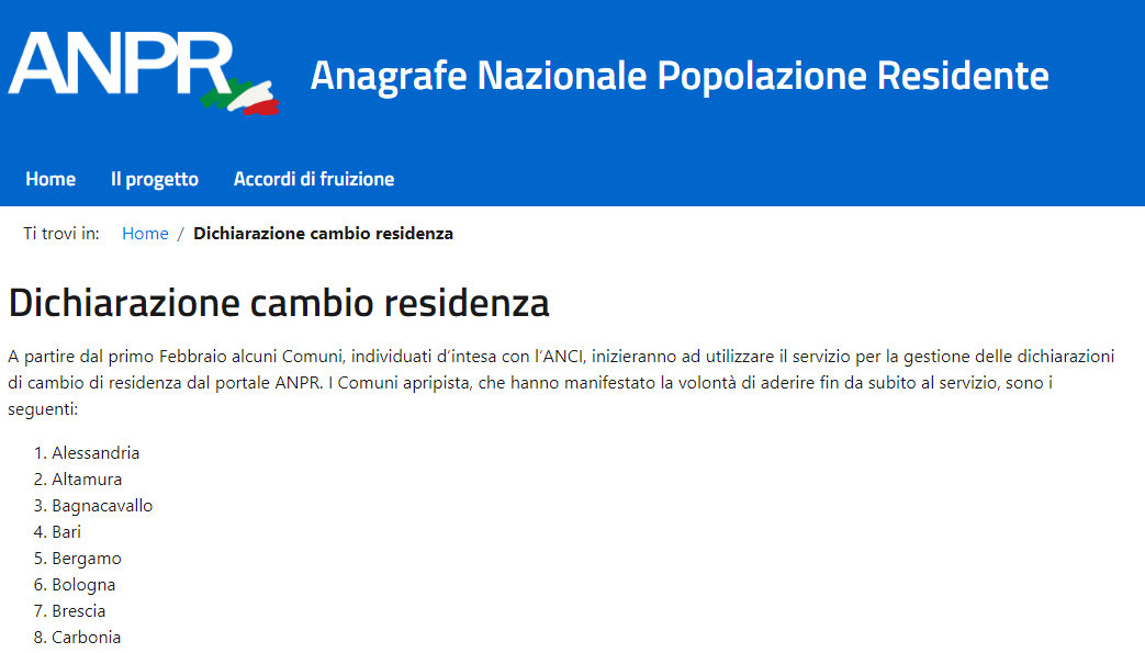 Inizia oggi una sperimentazione digitale di due mesi che permetterà ai cittadini di alcuni comuni il cambio della propria residenza interamente online con la nuova piattaforma dell’Anagrafe nazionale della popolazione residente.
