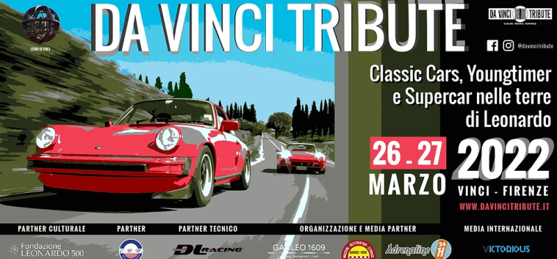 Da Vinci Tribute 2022, raduno emozionale per gli appassionati d’arte, automobilismo e natura, si svolgerà il 26 e il 27 marzo. La prima edizione di un emozionante viaggio di due giorni, si snoderà lungo i meravigliosi percorsi panoramici toscani dei Colli di Leonardo e della città di Firenze, offrendo un viaggio emozionale tra storia, cultura e natura. L’evento sarà riservato a massimo 40 vetture appartenenti alle categorie Classic Cars, Youngtimer e Supercar.