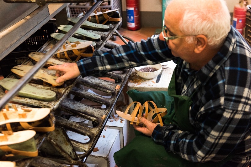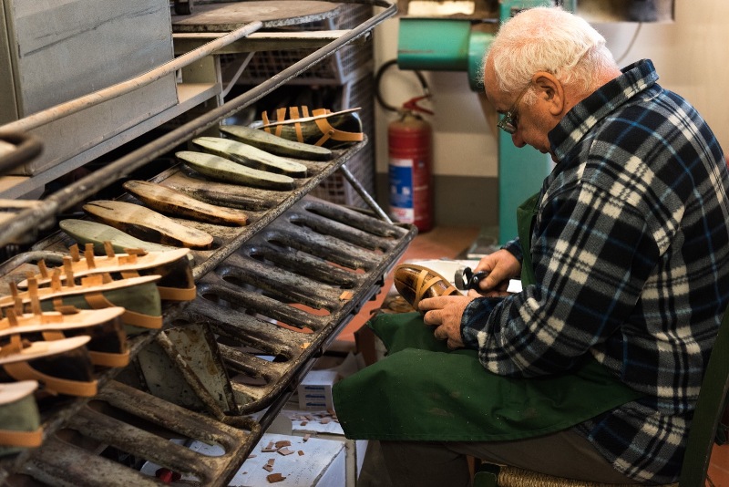 Mani sempre al lavoro, testa china e sguardo concentrato sulle scarpe a cui dare forma, tra una barzelletta, una battuta di spirito, un'osservazione sagace.