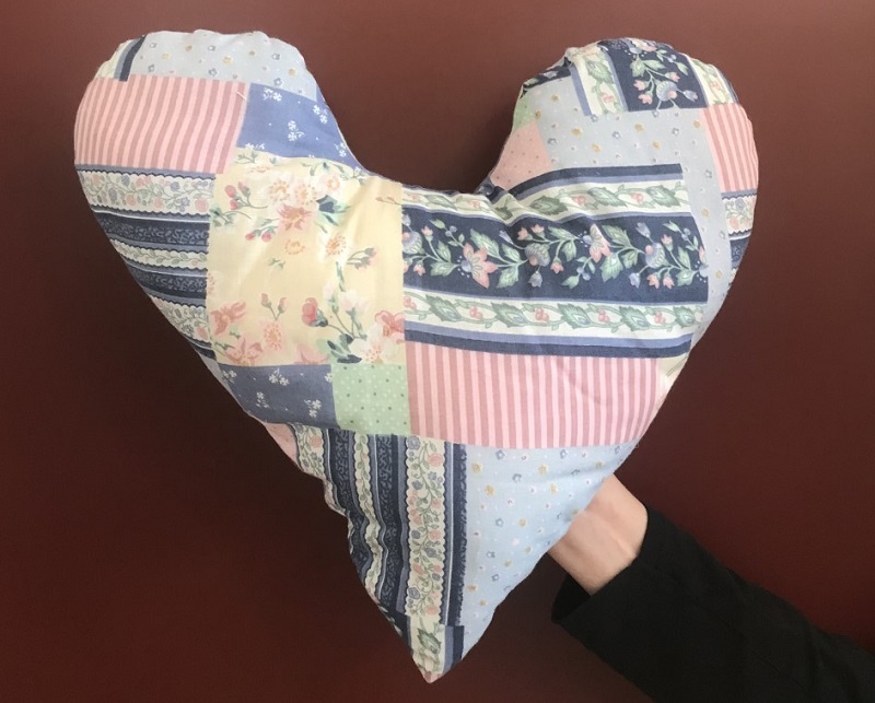 E’ un cuscino a forma di cuore, il dono speciale per le donne che devono affrontare il delicato momento dell’intervento di tumore al seno ed il percorso terapeutico successivo. Ogni cuscino è cucito e confezionati a mano da altre donne con stoffe di colore e fantasia diversi, un simbolo di vicinanza e aiuto delle donne per le donne.