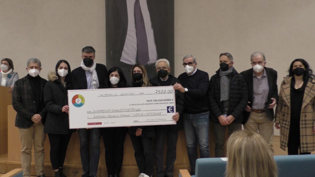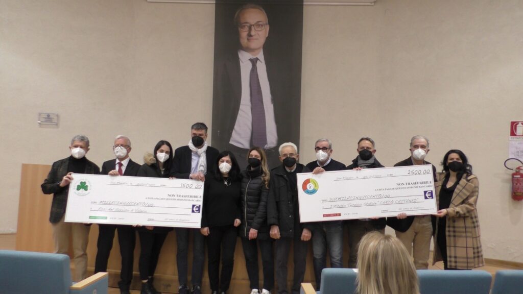 Una è l'associazione “Il Sorriso di Valeria”, in ricordo di Valeria Tramentozzi scomparsa a 29 anni il 19 novembre 2006, il cui padre Lucio da anni si fa promotore di iniziative benefiche che prevedono anche la consegna di borse di studio. L'altra è l'istituto tecnico “Carlo Cattaneo” di San Miniato, uno dei pilastri dell'istruzione del Valdarno Inferiore. Ed è stato proprio l'Auditorium della scuola superiore di via Catena questa mattina, sabato 5 febbraio, a ospitare l'evento in cui sono stati consegnati i due maxiassegni ai rispettivi beneficiari: 1.500 euro per “Il Sorriso di Valeria” e 2.500 per l'istituto diretto da Alessandro Frosini. All'iniziativa, patrocinata dal Comune di San Miniato, erano presenti oltre a Vittorio Gabbanini e Filippo Lotti anche il sindaco Simone Giglioli, Lucio Tramentozzi, la presidente del Consiglio d'Istituto del “Cattaneo” Moira Bianchi e i familiari di Gianluca Bertini, rappresentati dalla nipote Irene Mannucci che è intervenuta per i ringraziamenti. I due beneficiari da subito lavoreranno affinché questa somma venga distribuita appena possibile, stabilendo ovviamente dei criteri che da un lato valorizzino il merito e dall'altro tengano conto delle possibilità economiche di coloro i quali otterranno le borse di studio.