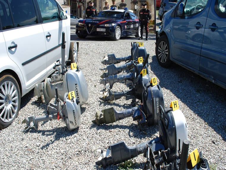 A bordo dell'auto, risultata intestata al 20enne di cui sopra, sono stati rinvenuti i motori nautici rubati. A seguito di indagini sviluppate dall’episodio narrato, è stata avviata un’attenta ricerca delle denunce simili avvenute in zona estendendole anche alla vicina Umbria, con la collaborazione di altri organi di polizia; procedendo in tal maniera alla ricostruzione delle circostanze ed alla legittima materiale restituzione ai proprietari. Il valore complessivo della refurtiva ai prezzi di mercato supera i 90.000 euro.