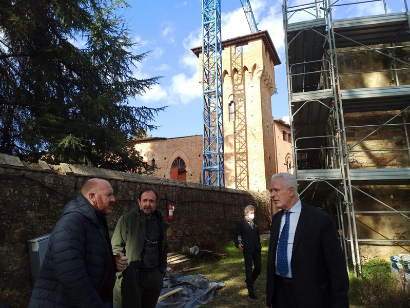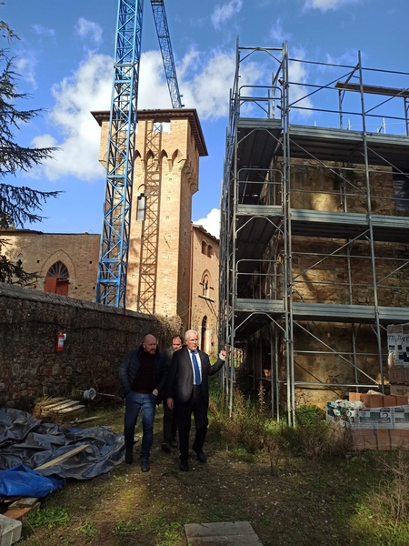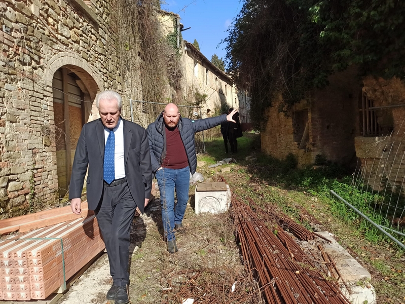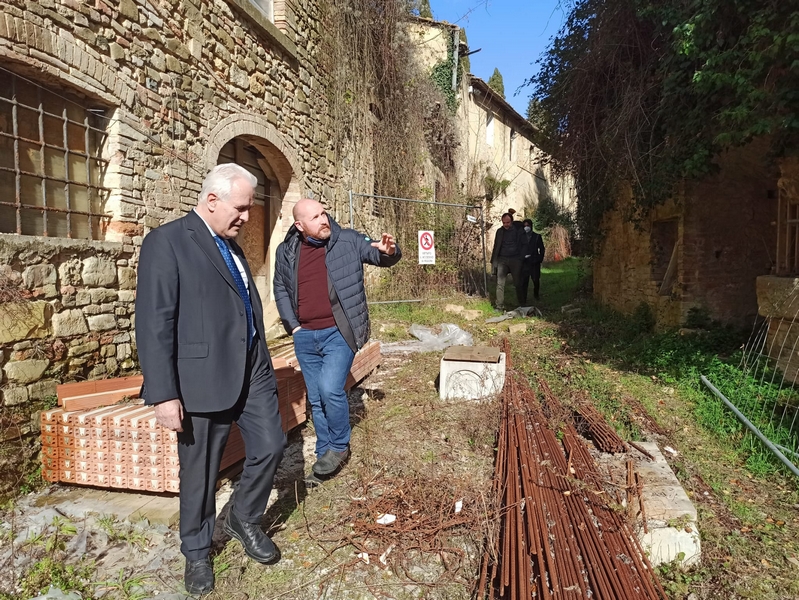 Della bellezza e del patrimonio storico-architettonico del complesso, oggi in condizioni di abbandono, è rimasto colpito il presidente Giani, guidato dagli amministratori locali alla scoperta di una pagina centrale delle origini della Toscana, sulle tracce di ciò che resta della fortificazione e dei suoi luoghi pieni di fascino e suggestioni dell’età millenaria. Il sindaco Baroncelli e l’assessore Trentanovi hanno accompagnato il presidente lungo la strada principale mostrandogli la via comunale che attraversa il borgo, libero comune nel 1200, quando la popolazione residente si attestava sui 1500 abitanti, per raggiungere la parte più alta del complesso da cui ogni pietra, ogni testimonianza, ogni traccia del passato di questo antichissimo sito domina la vallata del Chianti e della Valdelsa. Destinazione della visita: la Chiesa di Santa Maria a Linari, anch’essa bisognosa di consistenti interventi di restauro, che sarà ristrutturata e messa in sicurezza dall’amministrazione comunale con un investimento pari a 500mila euro. Risorse, queste già stanziate dal Comune, con le quali la giunta Baroncelli, nell’ambito di un percorso di collaborazione con la Sovrintendenza, darà forma ad un pezzo del sogno degli ex-abitanti e della comunità di tornare a vivere Linari.