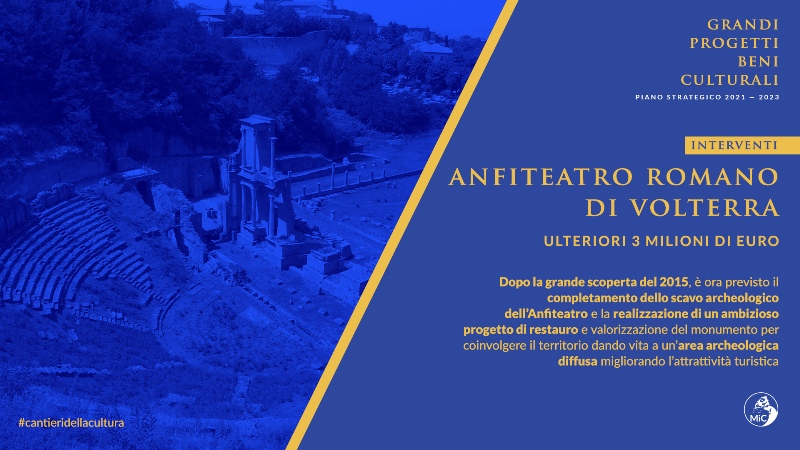 A Volterra invece arriveranno altri 3 milioni di euro per gli scavi dell'anfiteatro romano. Dovranno essere completati gli scavi e verrà avviato un ambizioso progetto di restauro e valorizzazione. L'obiettivo è quello di dare vita a un'area archeologica diffusa.