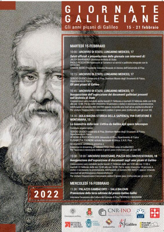 Gli interventi saranno in presenza e trasmessi in streaming all’indirizzo https://call.unipi.it/Galilei2022