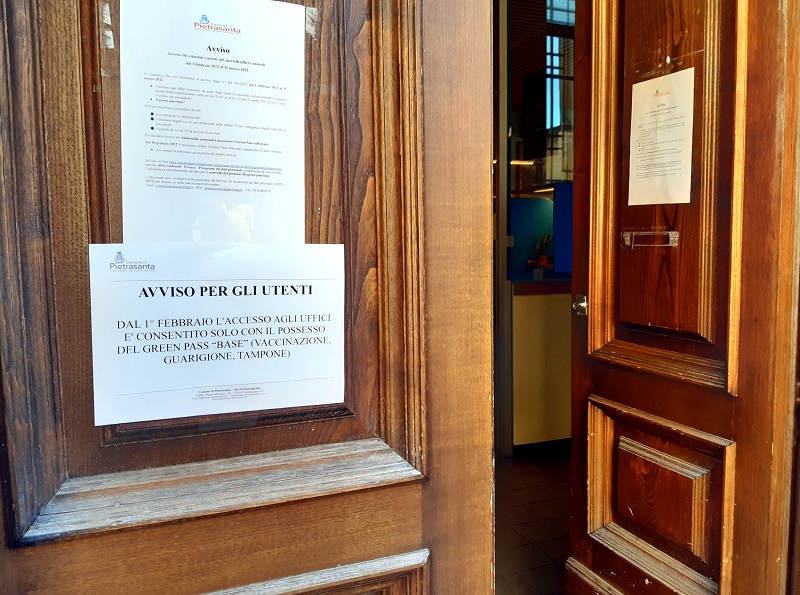 Due donne si sono presentate all'ingresso ma, alla richiesta del personale preposto al controllo del green pass, hanno rifiutato di mostrare la certificazione verde che dal 1° febbraio è necessaria (in versione almeno “base”) per accedere agli sportelli di servizio pubblico, come recitano chiaramente anche due avvisi all'esterno dell'ufficio stesso.
