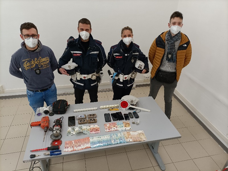 Durante il controllo in una palazzina, la municipale ha trovato droga, oltre 2mila euro e dispositivi elettronici: due spacciatori fermati, uno denunciato l'altro arrestato