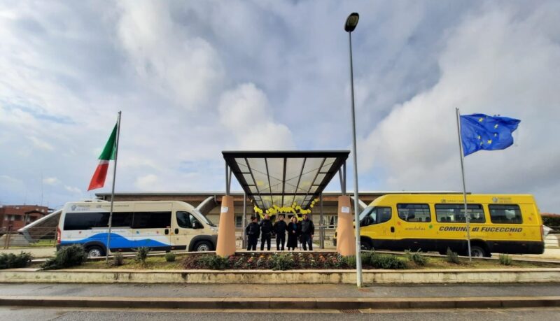 Il parco mezzi a servizio degli studenti fucecchiesi si rafforza con due nuovi scuolabus che l'amministrazione comunale ha potuto acquisire grazie al contributo erogato dalla Fondazione Cassa di Risparmio San Miniato e Crédit Agricole. I pulmini vanno ad aggiungersi agli altri 7 già in dotazione alla Fucecchio Servizi Srl, la società in house del Comune che si occupa anche dei servizi scolastici, e ai 3 mezzi del Tpl (Trasporto Pubblico Locale) che svolgono il servizio in orario mattutino. I nuovi scuolabus – uno di colore bianco e uno di colore giallo – già in servizio da alcuni giorni – sono stati presentati questa mattina di fronte alla scuola d'infanzia “C'era una volta” a San Pierino alla presenza del sindaco Alessio Spinelli, del vicesindaco e assessore alla scuola Emma Donnini, del presidente della Fondazione Cassa di Risparmio San Miniato Antonio Guicciardini Salini, del responsabile direzione regionale Toscana/Umbria di Crédit Agricole Massimo Cerbai, del presidente della Fucecchio Servizi Srl Lorenzo Calucci, della dirigente scolastica dell'istituto comprensivo Montanelli Petrarca Marinella Pascale, del consigliere nazionale Anci Marco Cordone. Al taglio del nastro ha fatto seguito la benedizione dei mezzi con i parroci Don Polidori e Don Castel. “I nuovi mezzi che presentiamo oggi – ha dichiarato il sindaco Spinelli – sono la testimonianza del continuo impegno da parte dell'amministrazione comunale nel miglioramento dei servizi scolastici ma anche della coesione del nostro territorio che, attraverso la generosità e la lungimiranza di un ente privato e di una banca, vede oggi implementare i servizi a sostegno delle famiglie e dei ragazzi. Ringraziamo pubblicamente la Fondazione Cassa di Risparmio San Miniato e Crédit Agricole per la scelta che hanno compiuto e che va a favore della nostra comunità”.