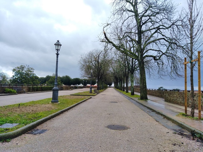 La chiusura era stata necessaria dopo la segnalazione di alcuni cittadini effettuata ai Vigili del Fuoco per alcuni rami ritenuti pericolanti. Il Comune di Siena ha ricevuto la segnalazione dai vigili e, da norma di legge, ha dovuto chiudere il tratto per tutelare l’incolumità dei cittadini, avviando l’iter burocratico per la valutazione dei trentotto alberi presenti. L’amministrazione comunale ha incaricato un agronomo esterno per detta valutazione, il quale ha avuto sessanta giorni di tempo per consegnare la relazione, che poi è stata elaborata nel più breve tempo possibile dagli uffici comunali e quindi ha dovuto passare il vaglio della Soprintendenza Archeologia Belle Arti e Paesaggio, tenuto conto dell’importanza monumentale della Fortezza Medicea stessa. Secondo il progetto elaborato, oltre alla sostituzione di alcuni alberi, si è proceduto anche con la potatura degli ippocastani presenti nel tratto fin qui interdetto.