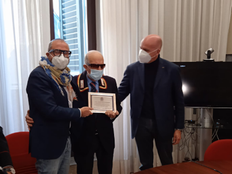 Il sindaco di Pontedera Matteo Franconi, a nome dell'Amministrazione Comunale, ha consegnato questa mattina una targa di riconoscimento ad Antonio Mattera Ricigliano, "Per il pluridecennale impegno nell'Anc e per il grande attivismo a favore del volontariato e della Comunità". Mattera è stato infatti presidente della sezione locale dell'Associazione Nazionale Carabinieri per ben 41 anni, ricoprendo il ruolo ininterrottamente dal 1980 al 2021, prima di lasciare il timone al nuovo presidente Sauro Gori. La breve cerimonia si è svolta stamani nella sala consiliare, alla presenza dei rappresentanti delle Forze dell'Ordine e delle Associazioni del territorio.
