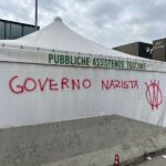 Continuano dunque nell’Empolese i danni alle strutture dedicate alla lotta al Covid-19. Neanche due mesi fa i teli del gazebo al punto tamponi gestito dalle Pubbliche Assistenze vicino al centro commerciale, furono ritrovati completamente tagliati. Era il 7 gennaio mentre nell’agosto 2021, lo stesso drive through fu imbrattato da scritte simili a quelle che oggi hanno danneggiato l’Hub.