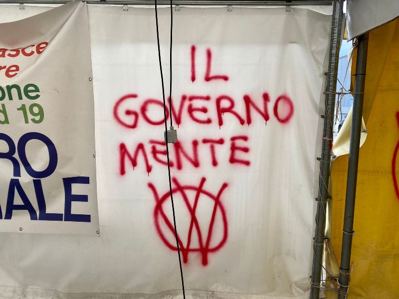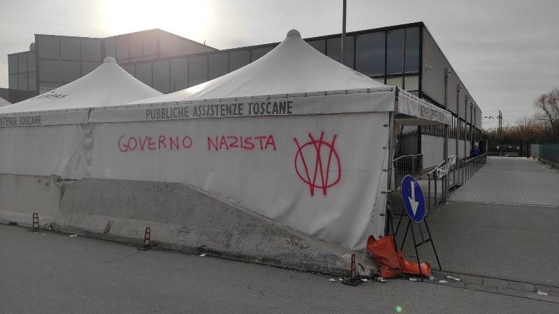 Ma non solo. I vandali hanno continuato a imbrattare anche i gazebo esterni delle Pubbliche assistenze utilizzati per la compilazione dei moduli prima dell'ingresso nell'hub. 'Governo nazista', 'Salvatevi tutti', 'Il governo mente' e altre frasi da complottismo spicciolo sono state vergate con la W rossa che sta a indicare l'appartenenza ai movimento No Vax più irriducibili, quelli che continuano a trasmettere via Telegram i loro messaggi e a inondare le bacheche di chi non la pensa come loro con post deliranti.