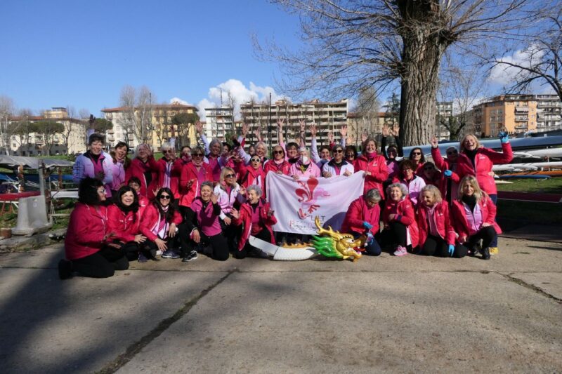 Era il 14 febbraio 2006 quando le Florence Dragon Lady della Lega Italiana per la Lotta contro i Tumori (Lilt) di Firenze hanno imbracciato la pagaia per la prima volta, in segno di rinascita. Da allora sfrecciano sull’Arno e sulle acque di fiumi e mari internazionali praticando il dragonboat, disciplina sportiva dalle origini orientali che negli ultimi anni si è diffusa in tutto il mondo, che per la sua filosofia, un grande sforzo collettivo, da anni viene applicata come riabilitazione psico-fisica per il tumore al seno. Le Dragon Lady hanno festeggiato oggi il loro sedicesimo compleanno alla Canottieri Comunali Firenze, da sempre partner fondamentale della Lega Tumori per questo progetto, dove dal 2006 a oggi hanno svolto oltre mille giornate di allenamento per un totale di 25mila presenze e 250 donne coinvolte. La squadra ha partecipato a numerose gare e raduni nazionali e internazionali, fino a ricevere, nel 2019, il prestigioso “Fiorino d’oro” della Città di Firenze.
