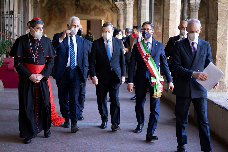 Draghi a Firenze cita Santa Croce. "Vogliamo riaprire tutto. 400 milioni per la tramvia e riqualificazione dello stadio"