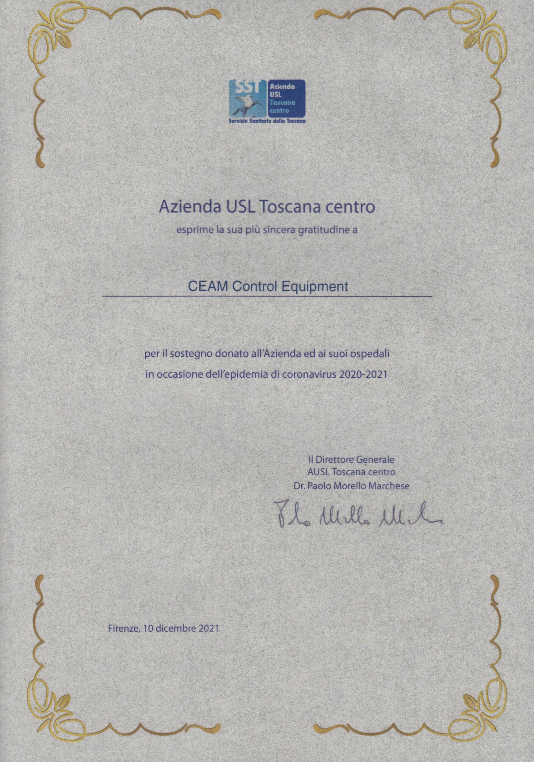 È quanto accaduto a Ceam Group proprio in questi giorni. L’azienda di via Valdorme ha infatti ricevuto il ringraziamento ufficiale della Asl Toscana Centro per il contributo dato agli ospedali durante la pandemia. Accanto al personale sanitario, infatti, anche quello tecnico ha avuto un ruolo fondamentale nei giorni più difficili della lotta al virus ed ora tutto questo è nero su bianco.