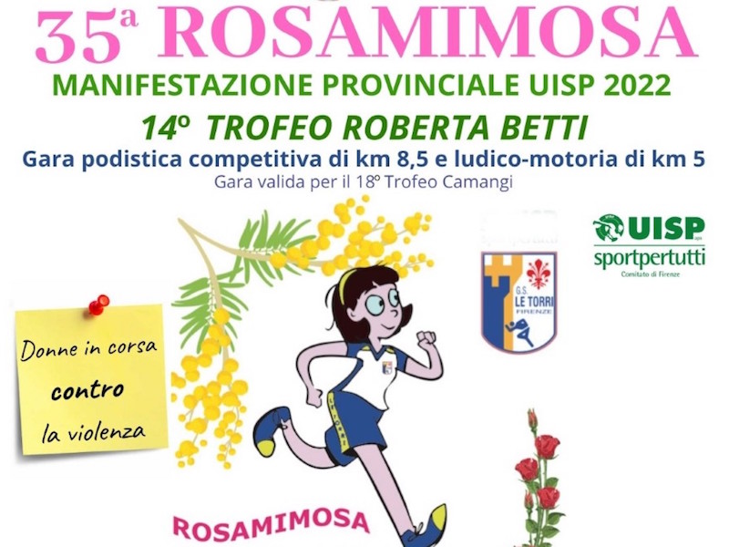 Sabato 5 Marzo 2022 i rioni di Soffiano e Monticelli ospiteranno la 35° edizione di Rosamimosa, l’ormai storica corsa femminile organizzata dal gruppo sportivo Le Torri Podismo in collaborazione con Prosport, UISP, Artemisia Centro AntiViolenza e Quartiere 4.