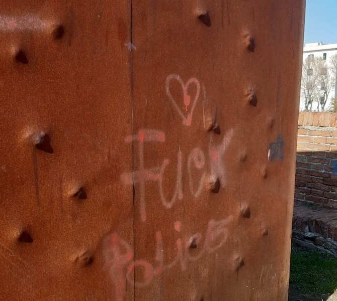 Il sindaco Luca Salvetti, non appena appresa la notizia si è recato sul posto per rendersi conto di persona del danno. Dure le parole di condanna del Sindaco: “Qualche stupido e ignorante oggi ha compiuto un atto ignobile che condanno a nome dell'Amministrazione Comunale e dell'intera città. E' stato imbrattato con una scritta offensiva un simbolo di dolore. Ho immediatamente attivato gli uffici comunali affinchè sia inviata una squadra per ripulire la scultura”.