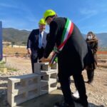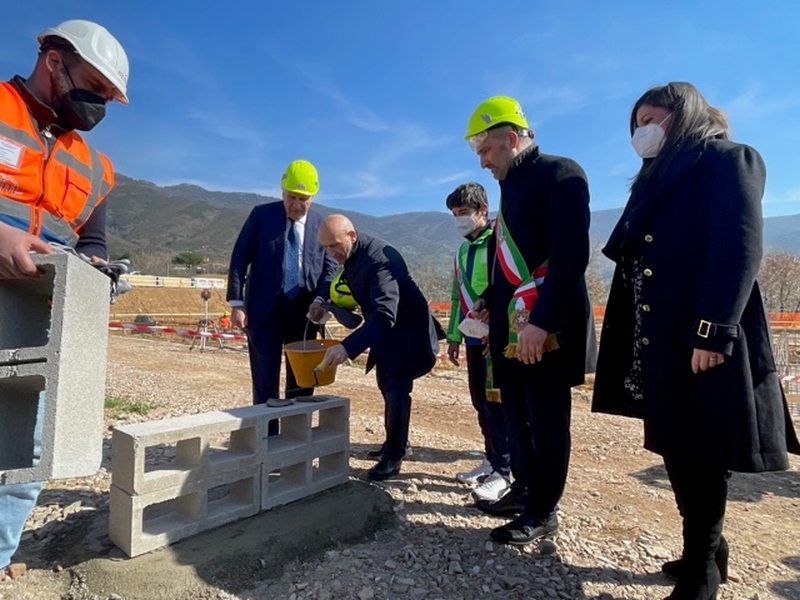 Posa della prima pietra, oggi a Calci (Pi), della nuova scuola secondaria di primo grado che sorgerà nel centro del Comune. La cerimonia, organizzata dall’amministrazione comunale e da Inail, ha visto la partecipazione, oltre al sindaco Massimiliano Ghimenti, al presidente nazionale di Inail Franco Bettoni e al prefetto di Pisa Maria Luisa D’Alessandro, anche del presidente Eugenio Giani e dell’assessora regionale all’istruzione Alessandra Nardini, tornati a Calci a un anno di distanza dall’inaugurazione delle opere di viabilità finanziate dalla Regione che consentiranno di raggiungere il nuovo edificio.