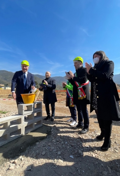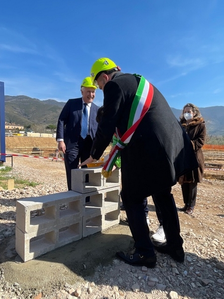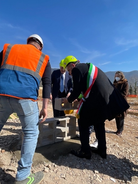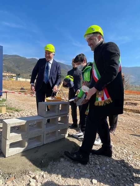 Posa della prima pietra, oggi a Calci (Pi), della nuova scuola secondaria di primo grado che sorgerà nel centro del Comune. La cerimonia, organizzata dall’amministrazione comunale e da Inail, ha visto la partecipazione, oltre al sindaco Massimiliano Ghimenti, al presidente nazionale di Inail Franco Bettoni e al prefetto di Pisa Maria Luisa D’Alessandro, anche del presidente Eugenio Giani e dell’assessora regionale all’istruzione Alessandra Nardini, tornati a Calci a un anno di distanza dall’inaugurazione delle opere di viabilità finanziate dalla Regione che consentiranno di raggiungere il nuovo edificio.