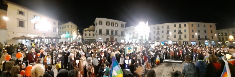 Centinaia di persone questo pomeriggio a Fucecchio hanno risposto all'appello dell'amministrazione comunale a cui si sono unite le associazioni, le contrade e le scuole, per dire No alla guerra in Ucraina. Una fiaccolata ha percorso le vie del centro, da piazza La Vergine a piazza Montanelli accompagnata da striscioni, cartelli e tante bandiere della pace. Nutritissima la presenza di giovani e di famiglie con una partecipazione che è andata ben oltre le attese degli organizzatori.