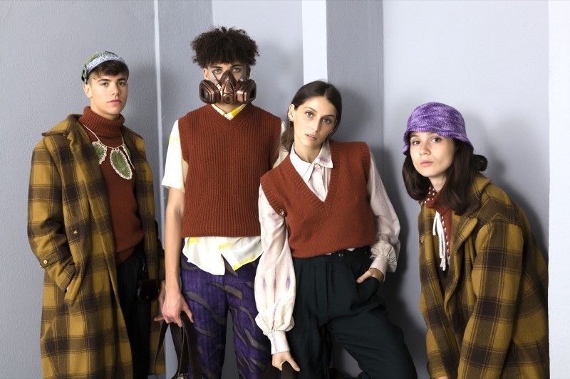 La collezione si articola attorno al concetto di slow fashion, facendo uso di tessuti biodegradabili, riciclabili e rigenerati da materiali di scarto, lavorazioni a mano e tinture naturali. Tra le materie prime reseda, mallo di noce, camomilla dei tintori, legno di campeggio ed eucalipto. Particolare attenzione è data ad accessori realizzati a mano con pelli di scarto conciate al vegetale, lavorazioni all’uncinetto e filati ecofriendly.
